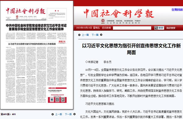 相关报道于10月13日在《中国社会科学报》头版“真理之光”栏目刊出。