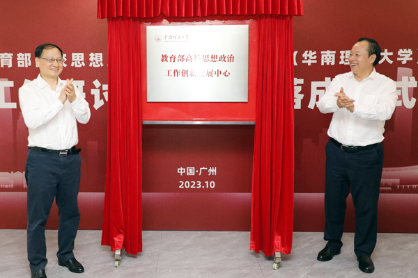 10月20日上午,教育部高校思想政治工作创新发展中心(华南理工大学)(以下简称“华南理工大学思创中心”)工作研讨会暨新址落成仪式举行。教育部思想政治工作司司长魏士强、华南理工大学党委书记章熙春出席揭牌仪式并致辞。活动由华南理工大学党委副书记麦均洪主持。