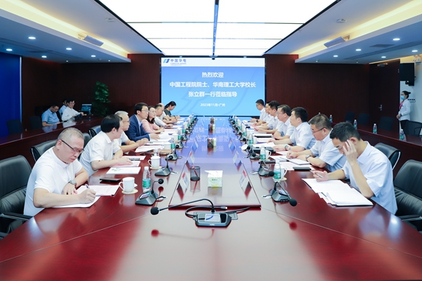 张立群在讲话中简要介绍了学校办学发展的基本情况,并着重介绍了广州国际校区“在地国际化”人才培养新范式以及学校科研工作布局和成效。张立群表示,华电广东公司作为中央直管的国有重要骨干企业,主动落实国家战略,大力推进科技创新,加快推动绿色低碳转型,为打造美丽中国作出了重要贡献。校企合作是高校服务国家战略和区域经济发展的重要方式,华电广东公司重点布局产业和华南理工大学优势学科高度契合,合作潜力巨大,希望双方以此次交流为契机,进一步开展多层次、多形式、多领域的合作,促进产学研深度融合,通过企业出题、协同答题的技术攻关模式,产出一批具有标志性、引领性的重大创新成果,为强化国家战略科技力量发挥更大的作用,为实现“双碳”目标贡献力量。