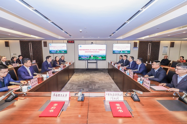 2月27日,华南理工大学与中国华电集团有限公司广东公司(以下简称“华电广东公司”)在五山校区举行战略合作框架协议签约仪式。华南理工大学校长张立群,华电广东公司党委书记、执行董事郑江涛,党委副书记、总经理梁汉东,党委委员、副总经理俞利锋出席签约仪式,仪式由学校党委副书记陶韶菁主持。
