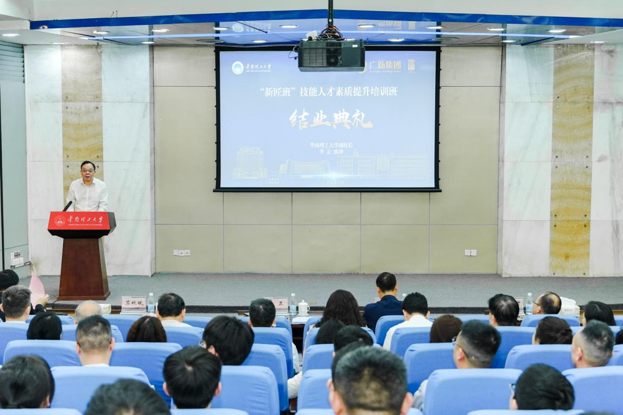 近日,广新集团首期“新匠班”技能人才素质提升培训班在华南理工大学举行结业典礼。学校副校长李正、广东省广新控股集团有限公司党委副书记黄家合出席结业仪式。