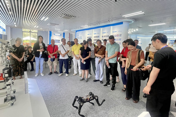 在公司的“派宝机器人”展厅,老同志们深入了解了机器人技术的最新发展成果。讲解员介绍了机器人在迎宾接待、物流配送、安保巡逻等场景的实际应用,并现场演示了智能科技的便捷与实用功能。老同志们与机器人亲切互动,体验智能语音交流功能,观看机器人的舞蹈表演和仿生机器狗的敏捷动作。