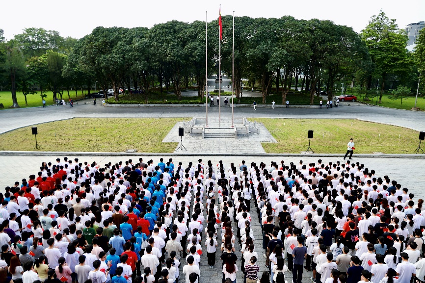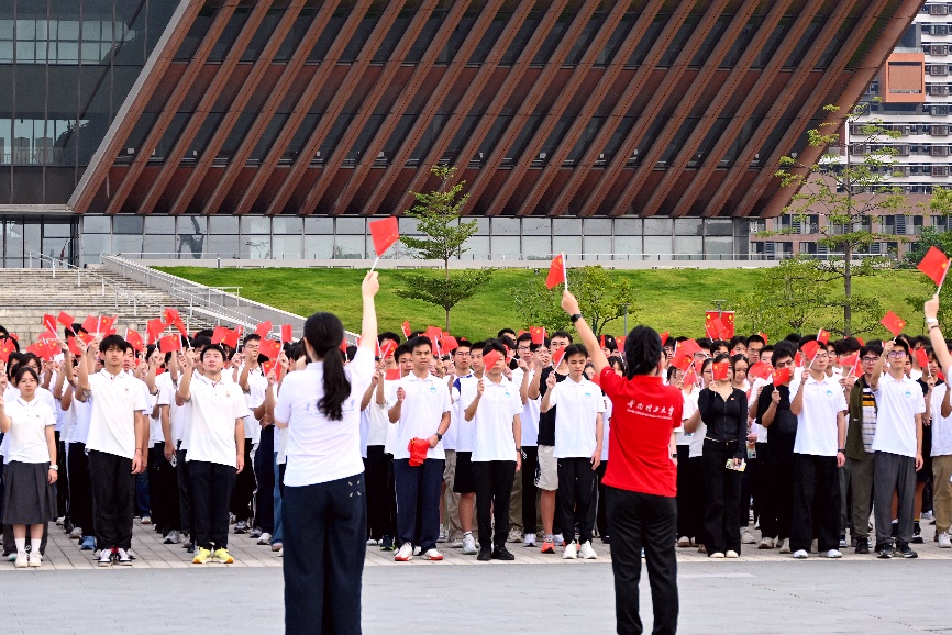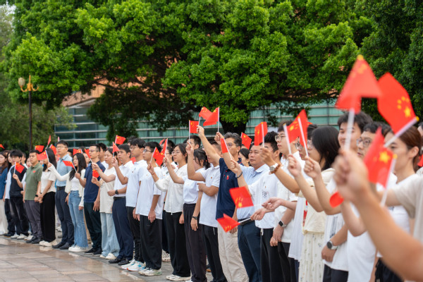 “五星红旗迎风飘扬,胜利歌声多么响亮。歌唱我们亲爱的祖国,从今走向繁荣富强……”时值中国人民抗日战争暨世界反法西斯战争胜利80周年,现场师生心潮澎湃、歌声激昂,齐声高唱《歌唱祖国》。这不仅是师生们对祖国母亲的深情告白,也承载着全体华工人对伟大祖国国泰民安、繁荣昌盛的美好祝愿。