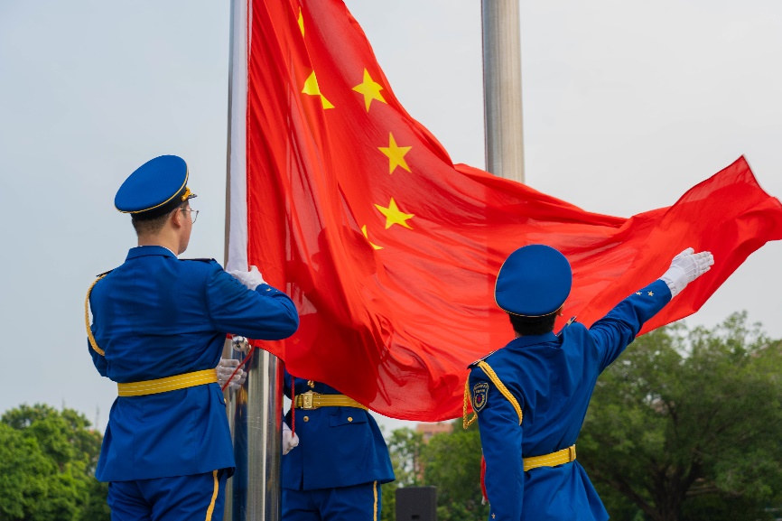 10月1日,华南理工大学三校区同步举行升旗仪式。清晨未至七点,师生们已精神焕发、整齐列队于升旗台前,静候庄严时刻的到来。