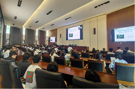 华南理工大学外国语学院学生、国际可再生能源大会青年代表魏嘉琪,百步梯创新学院学生、联合国大学澳门研究所人工智能大会优秀营员曾愈强作为学校青年代表,分享国际组织工作经历。魏嘉琪表示,国际组织不仅连接着不同国家的政策与理念,更连接着青年与广阔世界,让广大青年学子能以更立体的视角理解世界共同命运。曾愈强则分享了自己在人工智能大会中尝试使用微型AI帮助发展中国家进行智能农业监测、用算法缩小数字鸿沟的科研实践。