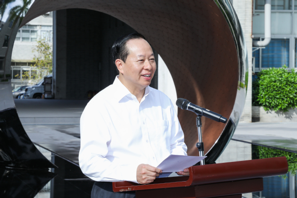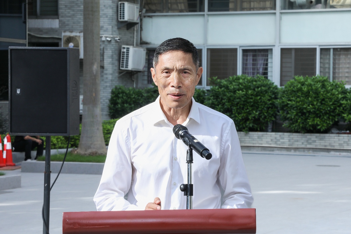 徐迎宾代表1977级高分子专业校友致辞。他回忆了往昔的校园时光,感念母校精神与师长教诲,既授专业知识,更育家国担当情怀。他表示,“未来之眼”雕塑是1977级高分子专业全体校友的心意凝结,希望能将华工人“厚德尚学 自强不息 务实创新 追求卓越”的精神传承下去。他寄语在校学子勤奋学习,为时代的发展和社会的进步贡献智慧和力量。