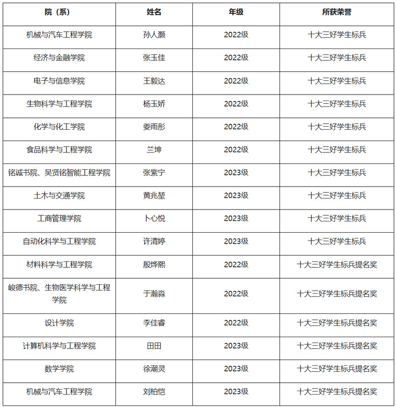 华南理工大学2024-2025学年度“十大三好学生标兵”评选结果