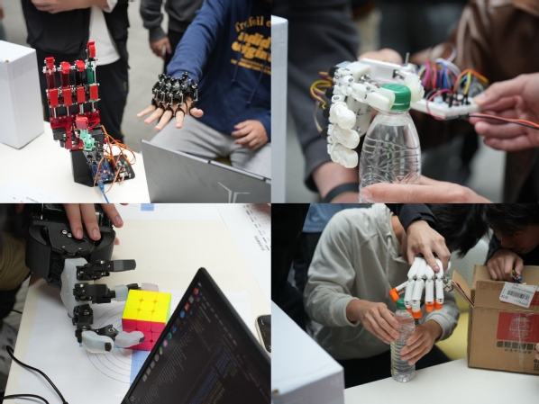 比赛以“打造高灵巧性机器人末端执行器”为核心,共有15支队伍参赛。赛事遵循“赛道并行”原则,将抓取、操作、负重三大项目分别设置在三个独立操作台上同步进行,各组按预设赛程有序轮转。灵巧手在同学们的操控下各显神通,上演精彩纷呈的“指尖对决”。