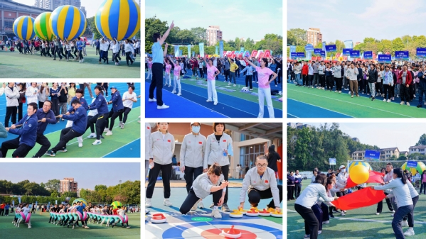运动会设置了“鸿运通天”“魔力飞毯”“超级大冲关”“陆地冰壶”“齐心协力”“凝心聚力”六个趣味项目,既考验体力,也注重智慧,更强调团队协作。各参赛队齐心协力、奋勇争先。场上身影跃动,场下呐喊助威。