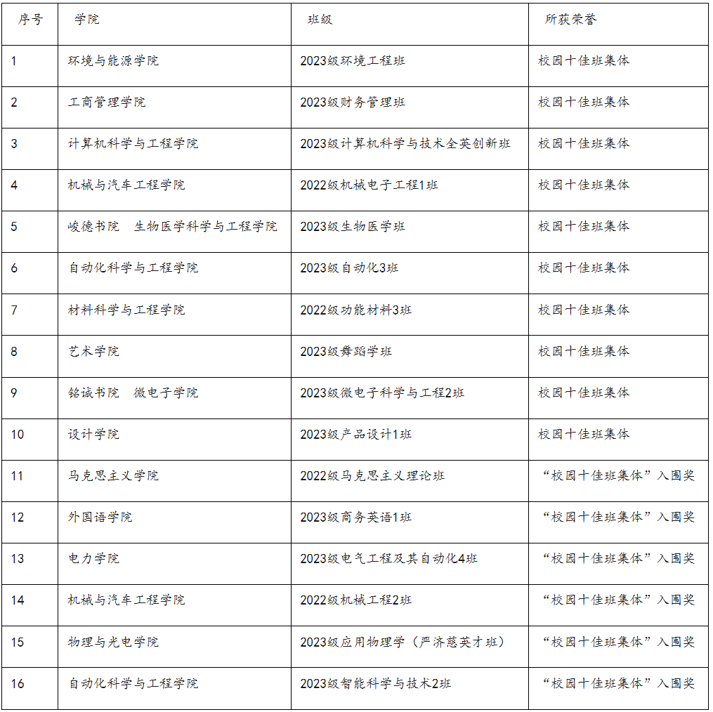 ·2024-2025学年度“校园十佳班集体”评选结果