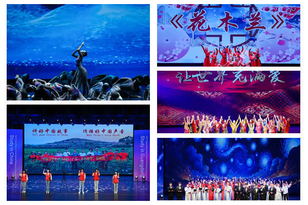艺术展演环节以“粤见世界·国际学子艺述纪”为主题。来自中山大学、华南理工大学、暨南大学、广东外语外贸大学等14所高校的中外学生同台演绎“初识·岭南印象”“探索·校园足迹”“扎根·文化共生”“绽放·未来之桥”四个篇章,以朗诵、歌舞、武术、情景剧等形式讲述了留学生在广东学习、生活的故事与感悟。他们表达了对中华文化的真挚热爱、对中国的深厚情感,抒发了投身中外友好事业、讲好中国故事、促进民心相通、推动构建人类命运共同体的美好愿望。