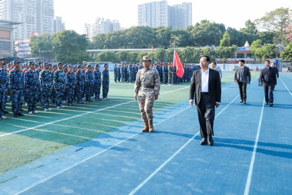 学校党委办公室(学校办公室)、党委宣传部、学生工作部(处)、保卫部(处)、大学城校区管委会办公室,广州国际校区综合事务办公室、学生事务办公室等相关单位负责人,以及各参训学院、书院负责人一同参加检阅。