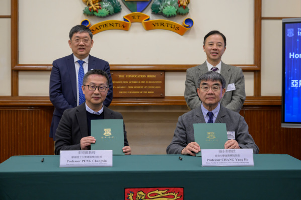 在香港大学,唐洪武与该校校长张翔举行友好会谈,双方共同为香港基地揭牌,并见证两校建筑学院联合签署战略合作框架协议。
