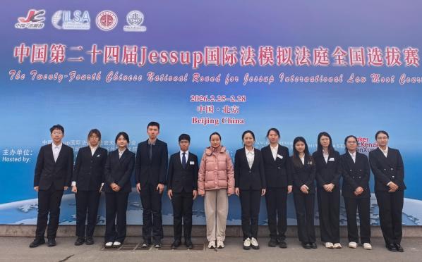 本届比赛由学校法学院胡赫男担任指导教师,2023级本科生韩悦琪、王馨仪、赵禹杭和2024级本科生蓝亮担任口头辩手,2023级本科生胡诗曼、许晶婷、张琬愉、刘益池和2024级本科生庞子依、林洪锐、刘睿君担任研究队员。代表队先后对阵来自北京大学国际法学院、武汉大学等院校的强劲对手,在竞技中展现出优秀的检索能力和逻辑清晰的庭辩能力。