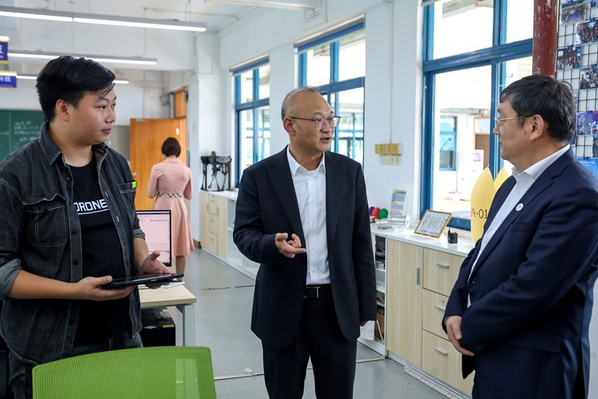 在国家级大学生创新创业孵化基地,俞伟跃深入了解学校以创业带动就业的工作机制,与毕业生创业代表及孵化团队交流,细致询问项目发展现状、市场布局和人才吸纳情况。他对学校主动服务国家及区域发展需求,培养具有创新思维、创造能力和创业意识的“三创型”人才,推动创新创业成果转化、拓宽毕业生就业渠道所取得的成效表示认可,并鼓励学校持续发挥创业带动就业的倍增效应。