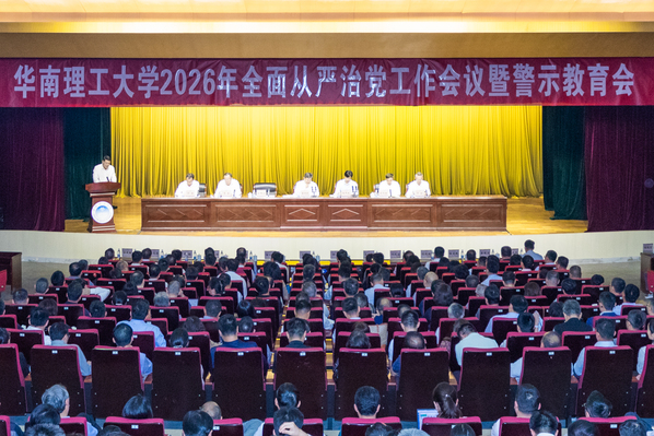 3月23日,华南理工大学召开2026年全面从严治党工作会议暨警示教育会。会议深入学习贯彻习近平总书记在二十届中央纪委五次全会中的重要讲话精神,传达学习广东省纪委十三届五次全会精神,全面贯彻落实全国和全省教育系统全面从严治党工作会议有关要求,总结2025年学校全面从严治党工作,分析学校反腐败斗争面临的形势和存在的问题,系统部署学校2026年全面从严治党重点工作,开展干部集体廉政谈话,淬炼严实作风、涵养清朗生态,以全面从严治党新成效保障“十五五”精彩开局。