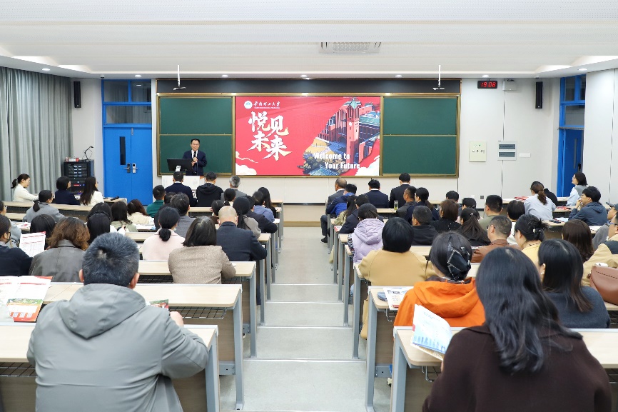 当晚的招生宣讲会上,许勇重点介绍了广州国际校区的办学特色与人才培养模式。广州国际校区各学院负责人详细讲解了学科专业设置、育人体系及学生未来发展前景,全方位展示校区“在地国际化”办学理念和新工科人才培养优势。