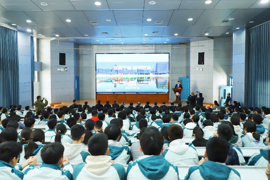 在扬州中学,唐洪武以“水润千秋 科创致远”为题,带来一场兼具科学深度与人文温度的讲座。
